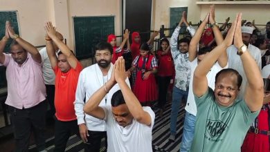 स्कूल में योग दिवस पर भाजपा नेताओं ने किया योग , अल्पसंख्यक मोर्चा प्रदेश शकील अहमद खान और मिर्जा एजाज बेग हिंद इग्लिश मिडियम स्कूल कार्यक्रम में शामिल हुए