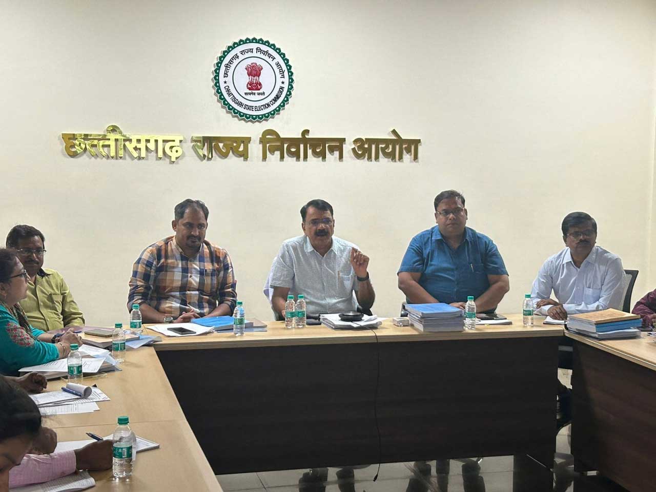 रायपुर, छत्तीसगढ़ राज्य निर्वाचन आयोग द्वारा त्रिस्तरीय पंचायत और नगरीय निकायों के आम और उप निर्वाचन के लिए कार्यक्रम जारी कर दिया गया है। आज दोपहर तीन बजे से छत्तीसगढ़ राज्य निर्वाचन आयोग के आयुक्त श्री ठाकुर राम सिंह और सचिव श्री मोहम्मद कैसर अब्दुल हक की उपस्थिति में वीडियो कॉन्फ्रेंसिंग के जरिये सभी आरओ तथा एआरओ को इस संबंध में वर्चुअल बैठक के ज़रिये प्रशिक्षण दिया गया।
