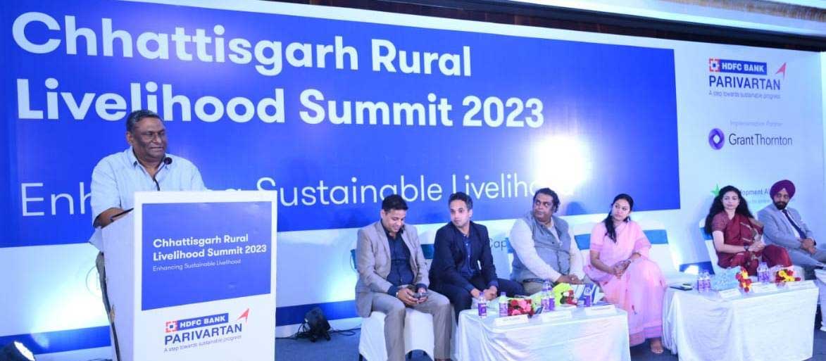 राजधानी रायपुर में कृषि विभाग समर्थित, ग्रांट थॉर्नटन भारत एलएलपी और सोसाएटी फॉर डेव्हलपमेंट अल्टरनेटिव्स द्वारा एचडीएफसी बैंक परिवर्तन कार्यक्रम के तहत ‘छत्तीसगढ़ ग्रामीण आजीविका शिखर सम्मेलन 2023’ का आयोजन किया गया। शिखर सम्मेलन का उद्देश्य ग्रामीण आजीविका को बढ़ावा देने में शामिल प्रमुख हितधारकों के बीच ज्ञान और अनुभव साझा करने के लिए मंच प्रदान करना था, जिसमें किसान उत्पादक संगठन (एफपीओ), सरकारी पहल और पारिस्थितिकी तंत्र विकास पर विशेष जोर दिया गया। साथ ही महिलाओं के लिए आजीविका के विकास और संबंधित एफपीओ की स्थिरता के लिए एक सक्षम वातावरण विकसित करने के लिए एक रणनीति पर विचार-विमर्श करना भी एक प्रमुख उद्देश्य था।