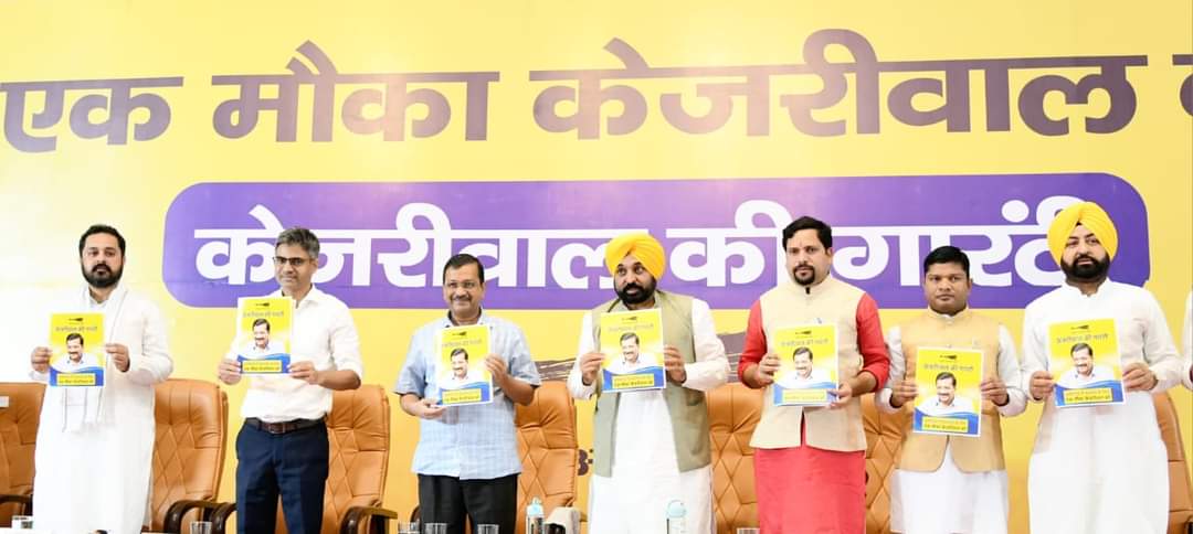 पार्टी के संयोजक व मुख्यमंत्री दिल्ली अरविंद केजरीवाल व मुख्यमंत्री पंजाब भगवंत मान ने जारी किया गारंटी कार्ड