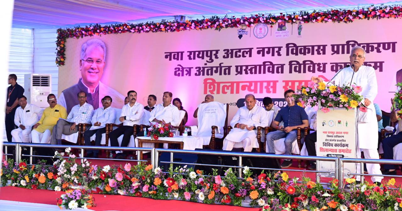 मुख्यमंत्री श्री भूपेश बघेल ने आज नवा रायपुर अटलनगर के सेक्टर-35 में आयोजित समारोह में तीन महत्वपूर्ण परियोजनाओं ‘कमर्शियल हब’, एरोसिटी और ‘शहीद स्मारक’  का भूमिपूजन और शिलान्यास किया।