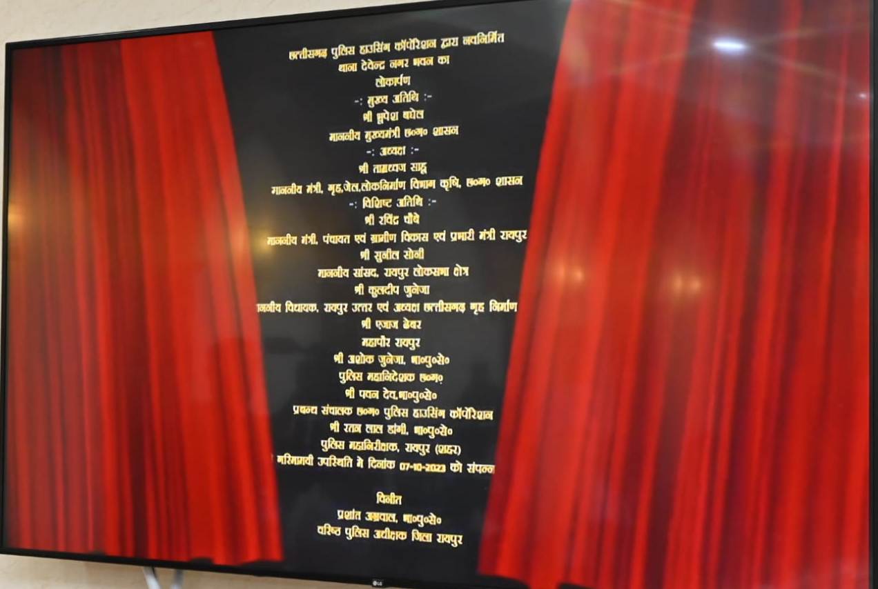 राजधानी स्थित अपने निवास कार्यालय में आयोजित कार्यक्रम में राजधानी के देवेन्द्र नगर थाना के नये भवन तथा माना थाना क्षेत्र के धरमपुरा में पुलिस सहायता केन्द्र भवन का वर्चुअल रूप से लोकार्पण किया। इनमें देवेन्द्र नगर थाना के नये भवन का निर्माण 50 लाख रूपए की लागत तथा धरमपुरा में पुलिस सहायता केन्द्र का निर्माण 18 लाख रूपए की लागत से किया गया।