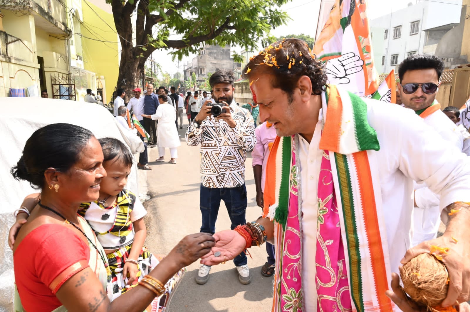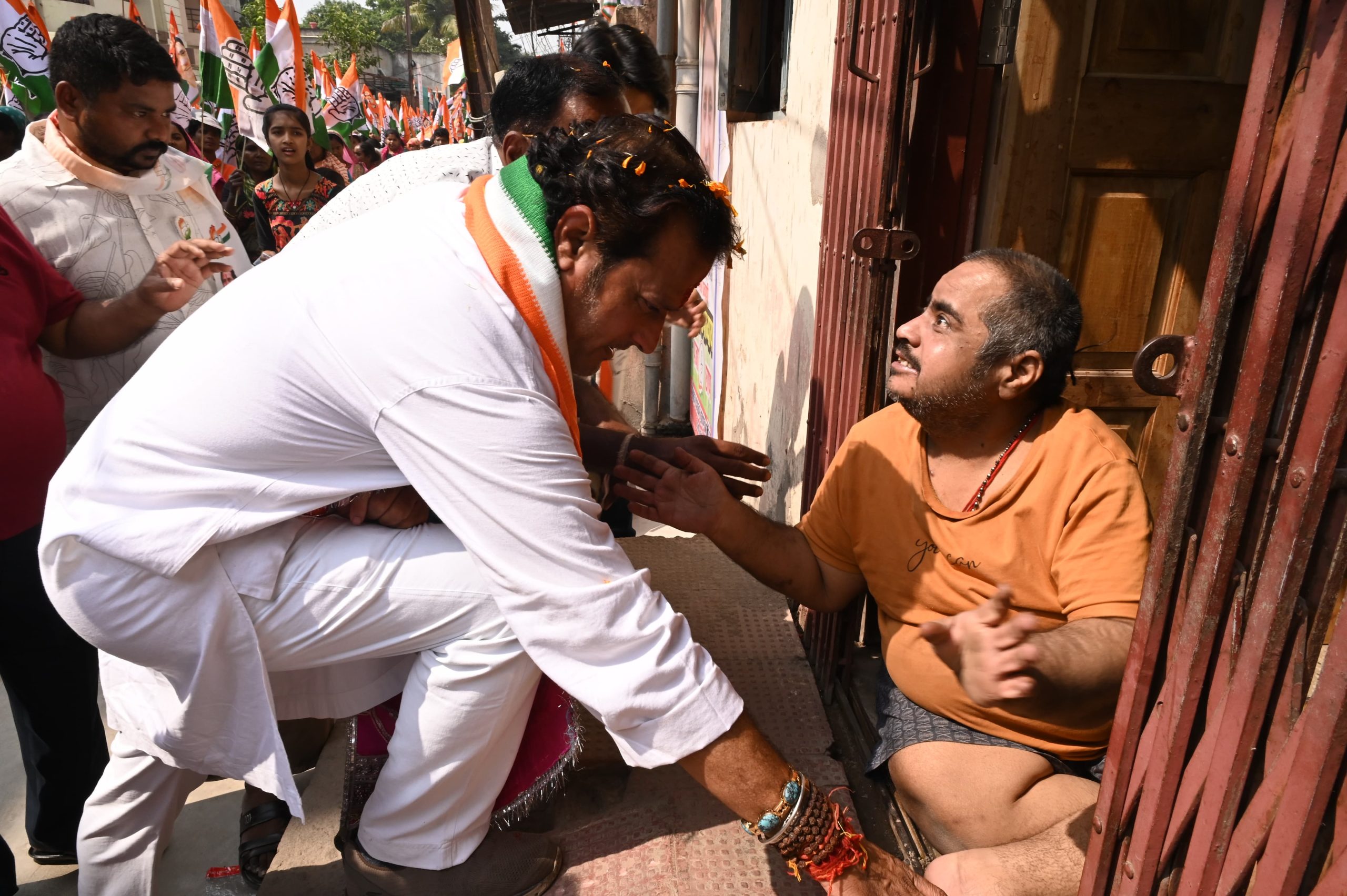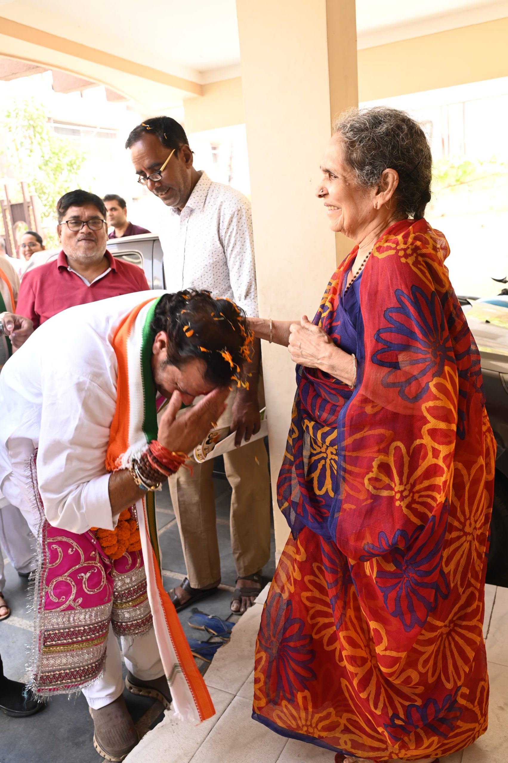 जनता का पैर छू कर आशीर्वाद ले रहे है विकास