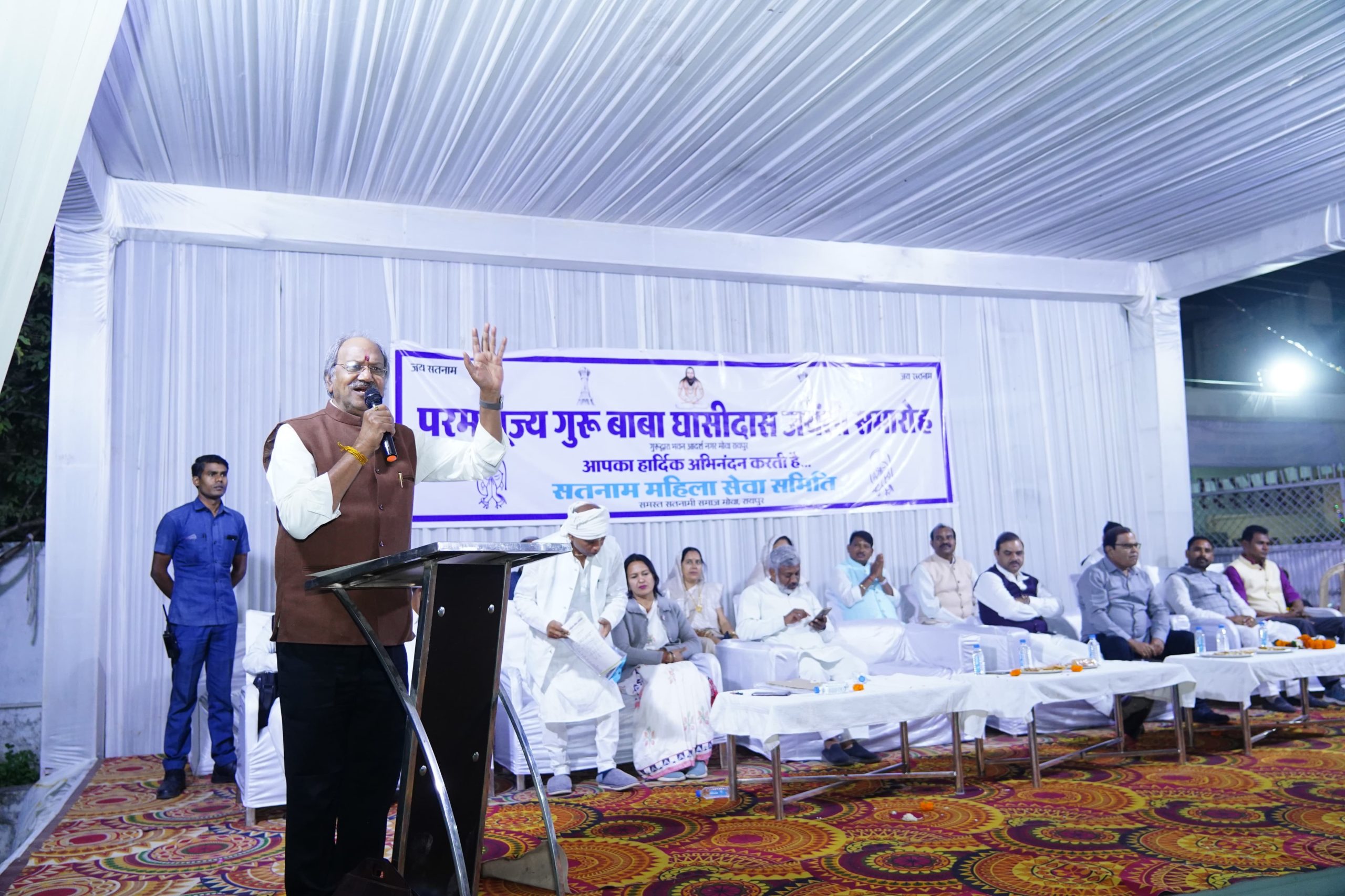 इस अवसर पर उन्होंने सतनामी समाज सहित उपस्थित गणमान्य नागरिकों को संबोधित करते हुए कहा कि गुरु बाबा घासीदास ने समाज को खुशहाल बनाने का मार्ग हमें दिखाया है। बाबा ने किसी एक समाज की नहीं अपितु सर्वजन सर्वसमाज के सुख की कामना की है। उन्होंने सामाजिक बुराईयों से दूर रहकर समाज और परिवार मे खुशहाली लाने का ज्ञान सबको दिया। श्री अग्रवाल ने कहा कि आज के दौर में गुरू बाबा घासीदास के बताए रास्ते पर चलकर ही हम परिवार व् समाज को सुख, शांति और समृद्धि प्रदान कर सकते है।