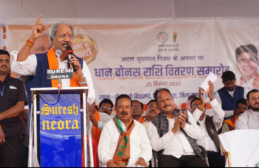 आज के दिन किसानों के खाते में 2 साल का धान बोनस राशि ट्रांसफर किया जा रहा है। यही मोदी की गारंटी है मोदी जी जो बोलते हैं वह पूरा करते हैं। अभी सरकार बने 21 दिन ही हुए हैं और मुख्यमंत्री को शपथ लिए हुए मात्र 11 दिन हुए हैं और राज्य के 12 लाख किसानों को लगभग 3,716 करोड़ रुपए का बोनस दिया जा रहा है। उन्होंने यह भी कहा कि 5 साल पहले कांग्रेस बोनस का वादा करके ही सरकार में आयी थी लेकिन बोनस तो दूर कोई भी वादा पूरा नहीं किया। आम आदमी सड़क, बिजली, पानी, इलाज, पक्का मकान, पीने का पानी सभी चीज के लिए तरसता रहा। कांग्रेस सरकार ने केवल यहां पर लूट करी भ्रष्टाचार किया और छत्तीसगढ़ को पूरे देश में बदनाम किया।