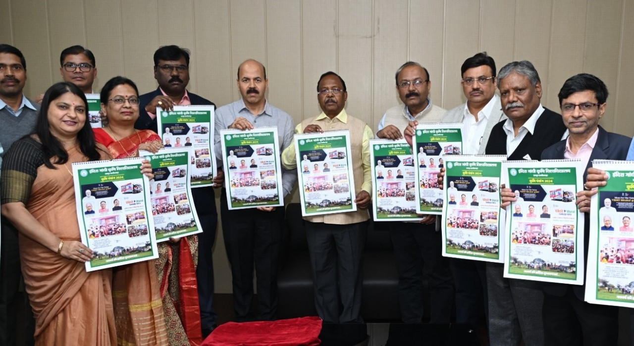 इंदिरा गांधी कृषि विश्वविद्यालय के कुलपति डॉ. गिरीश चंदेल ने कृषि मंत्री को विश्वविद्यालय द्वारा प्रकाशित कृषि पंचांग 2024 के बारे में जानकारी देते हुए बताया कि इंदिरा गांधी कृषि विश्वविद्यालय द्वारा विगत 20 वर्षांे से कृषि पंचांग एवं कृषि दर्शिका का प्रकाशन किया जा रहा है, जिसमें विभिन्न किसानोपयोगी जानकारियों का समावेश होता है। उन्होंने बताया कि कृषि पंचांग में वर्ष के 12 महीनों के कैलेन्डर एवं पंचांग के साथ-साथ किसानों के लिए केन्द्र एवं राज्य सरकार द्वारा संचालित योजनाओं, इंदिरा गांधी कृषि विश्वविद्यालय द्वारा किये जा रहे अनुसंधान, विकास तथा विस्तार कार्याें, विभिन्न फसलों की नवीन उन्नत किस्मों, प्रमुख अनाज, दलहन, तिलहन, फल, फूल, सब्जी, मसाला आदि फसलों की कृषि कार्यशाला एवं उत्पादन तकनीक, नवीनतम कृषि प्रौद्योगिकी, कृषि विश्वविद्यालय के अंतर्गत संचालित कृषि महाविद्यालयों तथा कृषि विज्ञान केन्द्रों की प्रमुख गतिविधियों को शामिल किया जाता है। विमोचन समारोह में इंदिरा गांधी कृषि विश्वविद्यालय के कुलसचिव श्री जी.के. निर्माम, निदेशक विस्तार सेवाएं डॉ. अजय वर्मा, संचालक अनुसंधान डॉ. विवेक कुमार त्रिपाठी, डॉ. के.एल. नंदेहा, डॉ. ज्योति भट्ट, डॉ. दीप्ति झा, डॉ. जी.पी. आयाम एवं डॉ. देव प्रकाश पटेल उपस्थित थे।