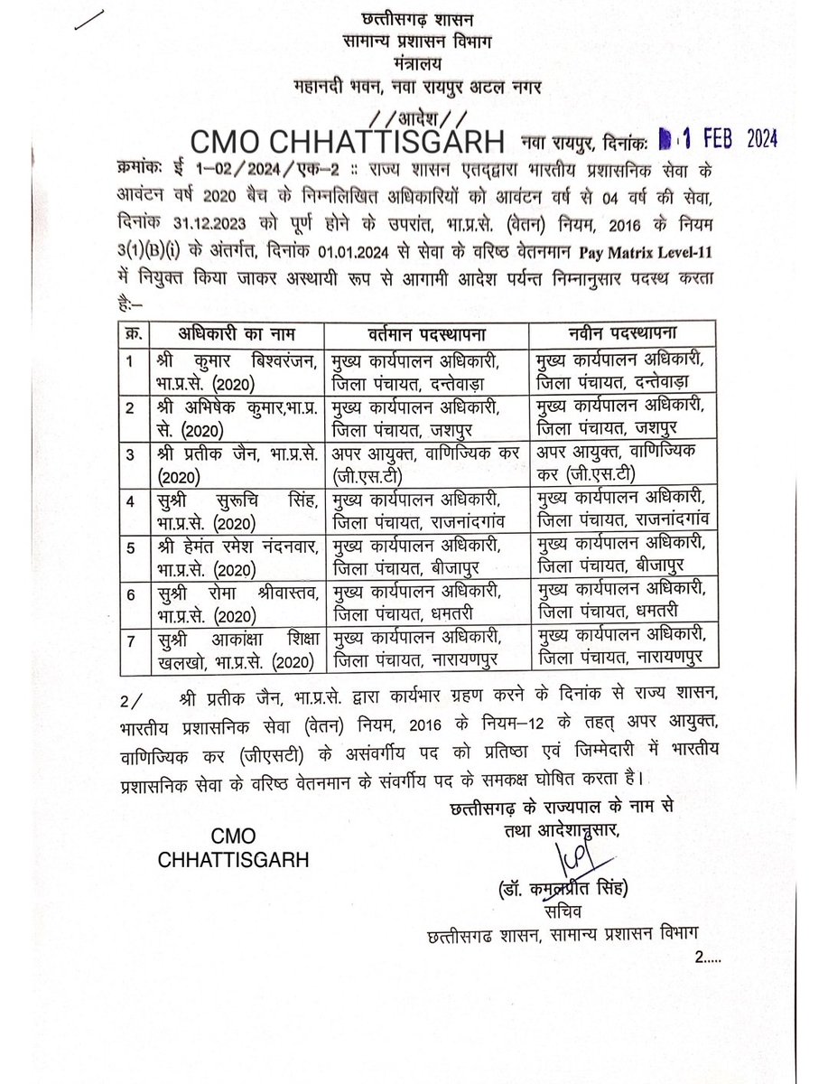 छत्तीसगढ़ में 7 IAS अफसरों को मिला प्रमोशन, देखें लिस्ट