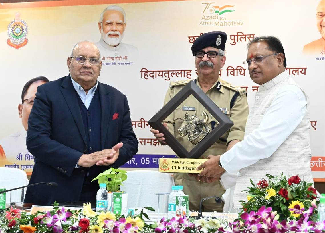 इस अवसर पर मुख्यमंत्री श्री विष्णु देव साय ने कहा कि नवीन कानून छत्तीसगढ़ राज्य के कानूनी परिदृश्य में एक महत्वपूर्ण मील का पत्थर साबित होंगे। नवीन अपराधिक कानूनों पर छत्तीसगढ़ के पुलिस अधिकारियों को व्यापक रूप से प्रशिक्षण प्रदाय करने हेतु हिदायतुल्लाह राष्ट्रीय विधि विश्वविद्यालय एवं छत्तीसगढ़ पुलिस के मध्य समझौता ज्ञापन पर हस्ताक्षर हुआ।