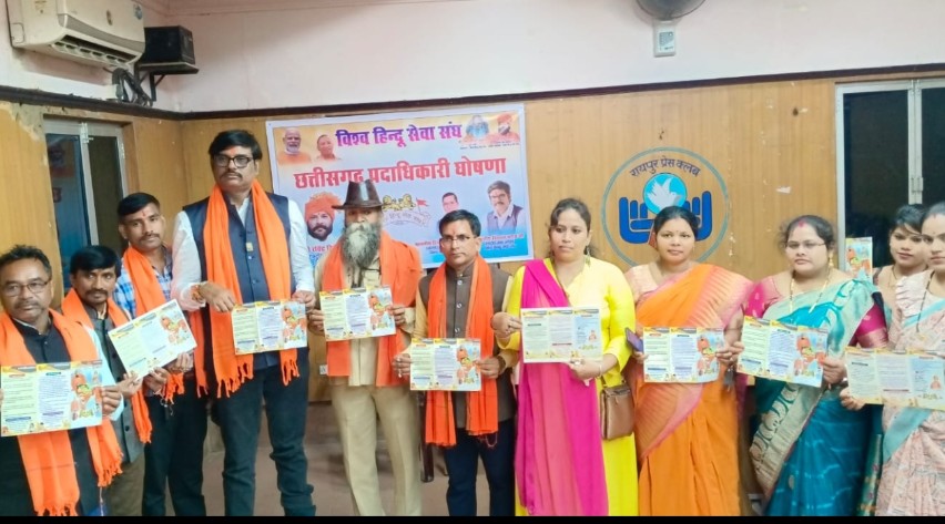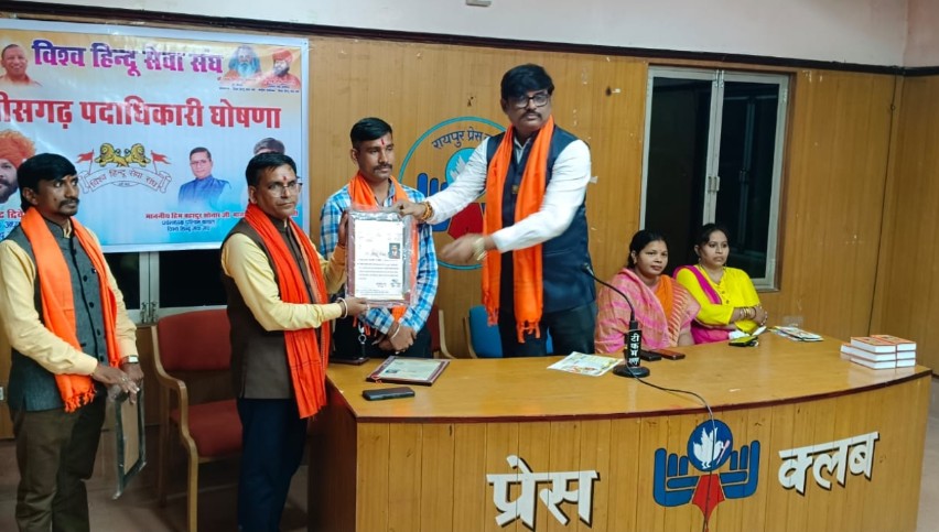 रायपुर प्रेस क्लब में विश्व हिंदू सेवा संघ के राष्ट्रीय महासचिव एवम उडीसा और छत्तीसगढ के प्रभारी श्री विशाल भगत ने छत्तीसगढ़ में पदाधिकारी की घोषणा की