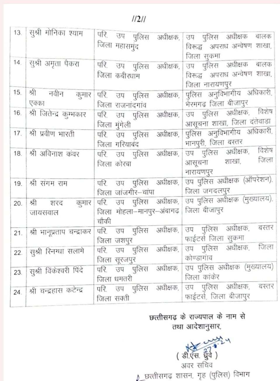 24 डीएसपी को मिली पहली पोस्टिंग,देखें सूची किसे कहां की मिली जिम्मेदारी