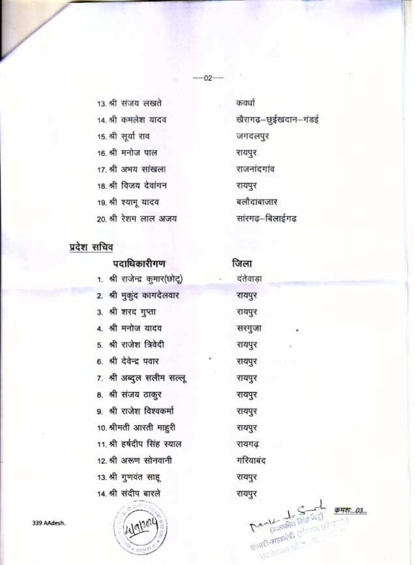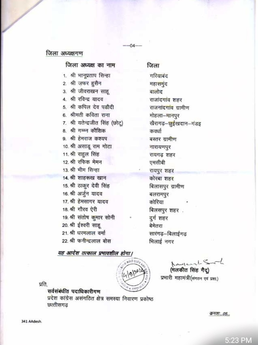 कांग्रेस ने 22 नए जिलाध्यक्षों का किया ऐलान, इन नेताओं को मिली जगह