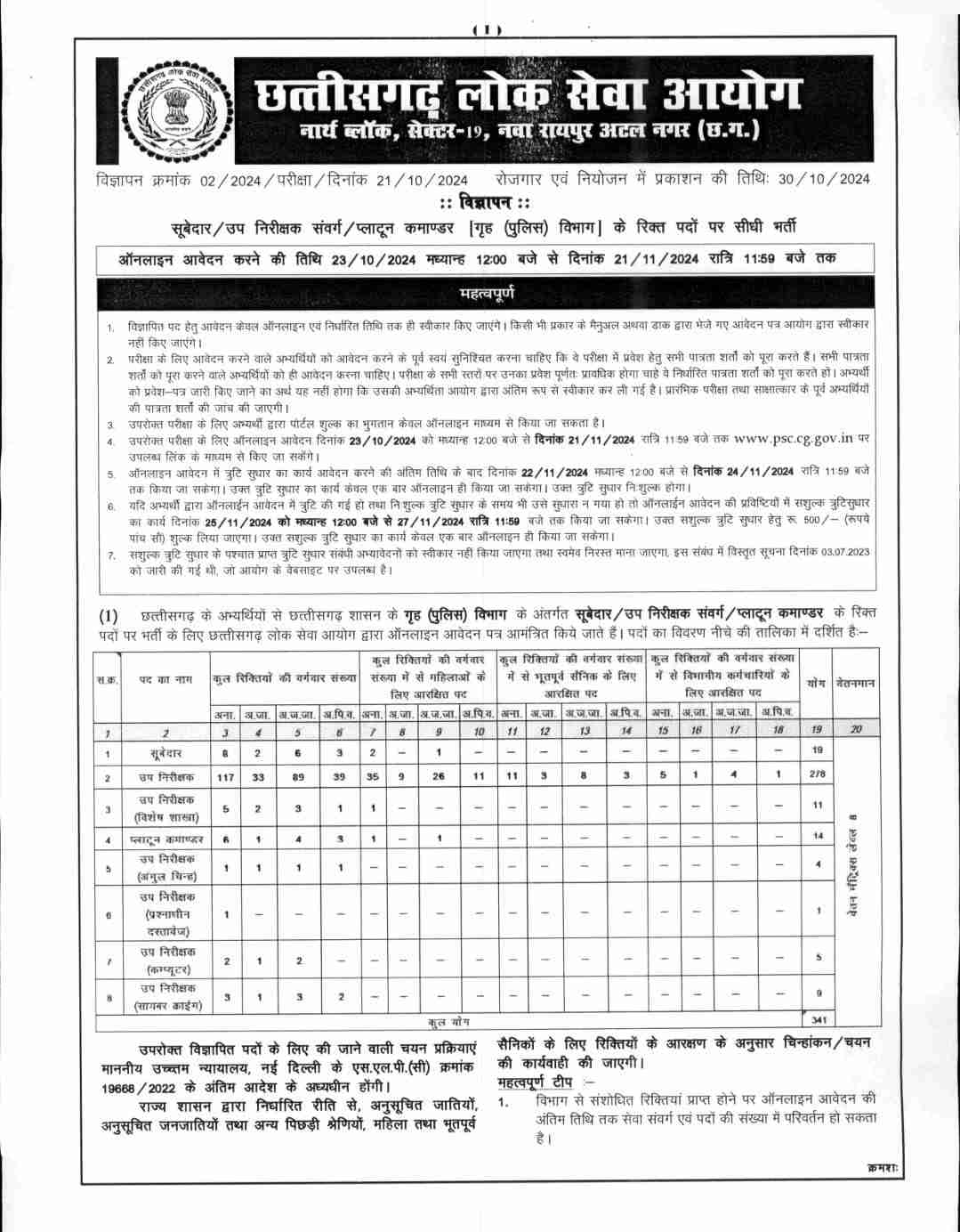 CGPSC ने निकाली वैकेंसी, SI समेत इन पदों पर होगी भर्ती, जानिए पूरी डिटेल…