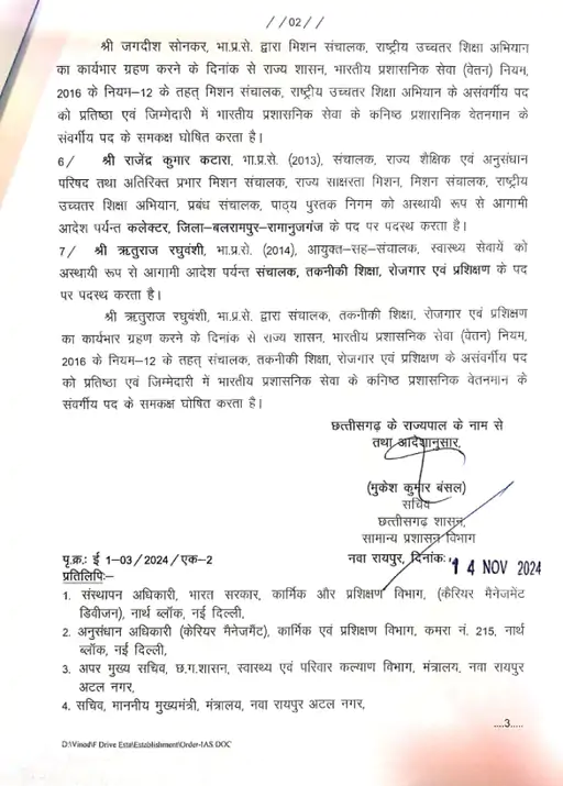छत्तीसगढ़ में 7 IAS अफसरों का ट्रांसफर, जानिए कौन से अफसर को मिली कौन-सी जिम्मेदारी, देखिए लिस्ट