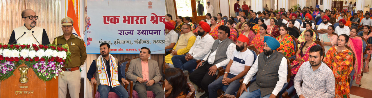 राजभवन में राज्यपाल श्री डेका के मुख्य आतिथ्य में भारत के राज्यों क्रमशः छत्तीसगढ़, मध्यप्रदेश, पंजाब, हरियाणा और केंद्र शासित प्रदेश चंडीगढ़ का स्थापना दिवस हर्षाेल्लास के साथ मनाया गया। प्रधानमंत्री नरेंद्र मोदी की पहल पर शुरू की गई केन्द्र सरकार के “एक भारत-श्रेष्ठ भारत” कार्यक्रम के तहत विविधता में एकता की भावना को बढ़ावा देने के लिए सभी राज्य एक-दूसरे राज्यों का स्थापना दिवस मना रहे हैं। इसी कड़ी में राजभवन में यह कार्यक्रम आयोजित किया गया था। जिसमें छत्तीसगढ़ में निवास करने वाले इन राज्यों के लोगों ने उत्साह के साथ भाग लिया।