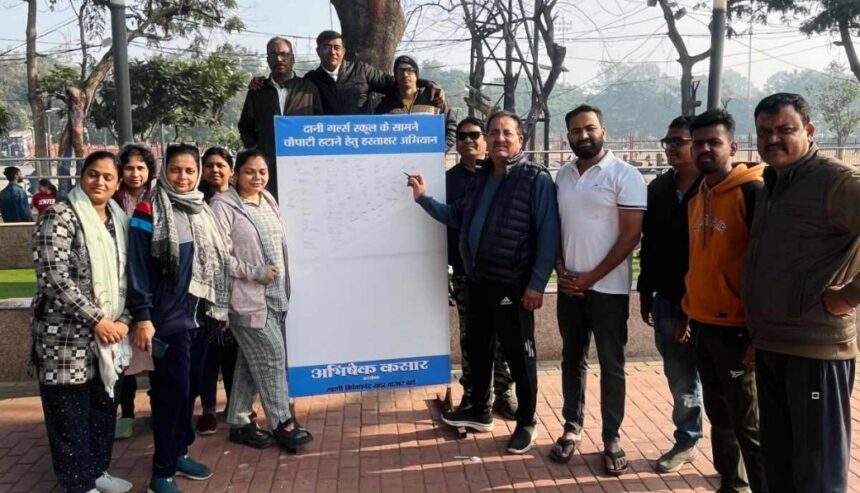 कसार ने बताया कि दानी गर्ल्स स्कूल के ठीक सामने चौपाटी के बनने से जो जमावड़ा लगेगा, वो स्कूल की छात्राओं की सुरक्षा पर सवाल खड़ा करता है। उन्होंने बताया कि प्रदेश में जब से भाजपा की सरकार बनी है। महिलाओं पर लगातार अपराध बढ़ते जा रहे हैं, उन्हें रोकने की कोशिश करने के बजाय भाजपा के गर्ल्स स्कूल जैसे संवेदनशील जगह पर कमीशन के लिए व्यापार लगाना चाहते हैं। चौपाटी के विरोध में हुए इस हस्ताक्षर अभियान में आम जनता के साथ दानी गर्ल्स स्कूल की छात्राओं ने भी बढ़ चढ़कर हिस्सा लिया। इस अवसर पर दीपक शर्मा, उपेंद्र डुकरे, सागर वाकड़े, अनुभव शुक्ला, विकास कसार, सुनील बंसल, चेतन चावड़ा, विपिन द्विवेदी, अजय मोहंती, भरत यादव,संयम, प्रखर, वर्षा, अर्चना,गोलू, मुन्ना उपस्थित रहे।