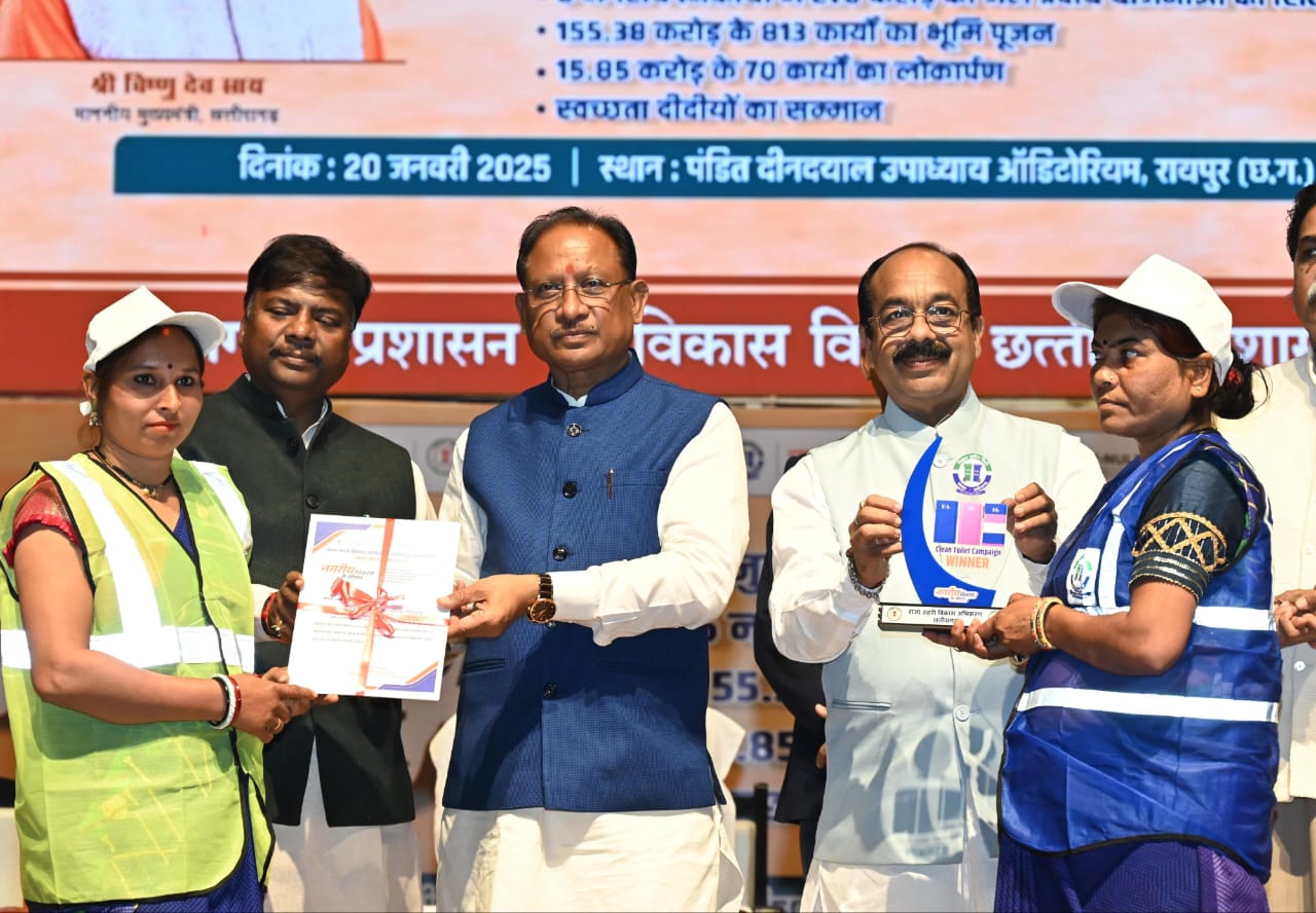 मुख्यमंत्री ने कहा कि शहरों में स्वच्छता और डोर-टू-डोर कचरा कलेक्शन करने में स्वच्छता दीदियों का बड़ा योगदान है। इनके लगन और मेहतन से ही स्वच्छता मिशन सफल हो पा रहा है। स्वच्छता दीदियों का सम्मान, इनके योगदान को प्रोत्साहन देता है। हम इनका सम्मान करके खुद भी सम्मानित महसूस कर रहे हैं। राज्य के नगरीय निकायों में इस समय स्वच्छ भारत मिशन के अंतर्गत 9 हजार से अधिक स्वच्छता दीदी कार्यरत हैं। इन्हें 7200 रुपये मानदेय दिया जाता है। मुझे यह बताते हुए अत्यंत खुशी हो रही है कि स्वच्छता दीदियों के मानदेय में आज 800 रूपये की बढ़ोत्तरी की जा रही है। अब स्वच्छता दीदियों को हर महीने 8 हजार रूपये मानदेय मिलेगा।