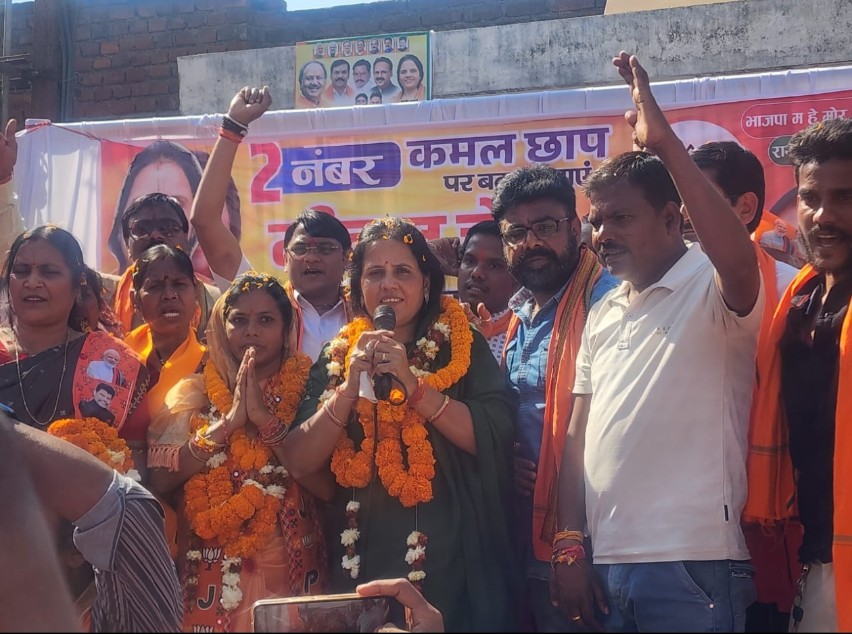 आज मीनल चौबे की जनसंपर्क रैली कामरेड सुधीर मुखर्जी वॉर्ड से शुरू हुई जहां प्रत्याशी सुषमा साहू और ग्रामीण विधायक मोतीलाल साहू सहित अन्य नेताओं के साथ उन्होंने जनता से आशीर्वाद मांगा इस दौरान ग्रामीण की जनता विशेष कर महिलाओं ने मीनल चौबे सहित सभी भाजपा नेताओं का आत्मीय स्वागत किया इस दौरान महिलाओं उन्हें मालाएं पहनाई आरती उतारी पुष्पवर्षा की और साथ ही साथ जीत की अग्रिम शुभकामनाएं भी प्रेषित की उसके पश्चात कामरेड सुधीर मुखर्जी वॉर्ड से बाबू जगजीवन राम वॉर्ड में मनोज जांगड़े , रविन्द्र नाथ टैगोर वॉर्ड विनय प्रताप सिंह , लालबहादुर शास्त्री वॉर्ड उत्तरा सिंह , पण्डित विद्या चरण शुक्ल वॉर्ड गायत्री नौरंगे , डॉ.राजेंद्र प्रसाद वॉर्ड विनय निर्मलकर , रानी दुर्गावती वॉर्ड अनामिका सिंह के साथ भाजपा के लिए जनता से मतदान का आशीर्वाद मांगा वहां से पुनः लालबहादुर शास्त्री वॉर्ड और फिर अंत में महर्षि वाल्मीकि वॉर्ड में प्रभा विश्वकर्मा के साथ वॉर्ड भ्रमण किया इस दौरान कई जगह महापौर प्रत्याशी मीनल चौबे ने नुक्कड़ सभाओं को संबोधित किया ।