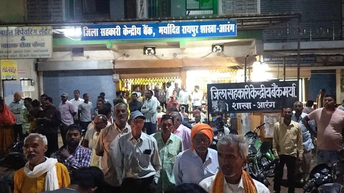 आरंग. जिला सहकारी बैंक आरंग में आज किसानों ने जमकर हंगामा मचाया. दिनभर किसान बैंक में पर्याप्त कैश नहीं होने से परेशान रहे. लगभग शाम 7 बजे किसानों का धैर्य टूट गया और गुस्से में आरंग -खरोरा मार्ग पर चक्काजाम कर दिया. इसकी जानकारी मिलते ही आरंग एसडीएम पुष्पेंद्र शर्मा और थाना प्रभारी राजेश सिंह मौके पर पहुंचे और किसानों को शांत कराया, जिसके बाद चक्काजाम समाप्त हुआ.
