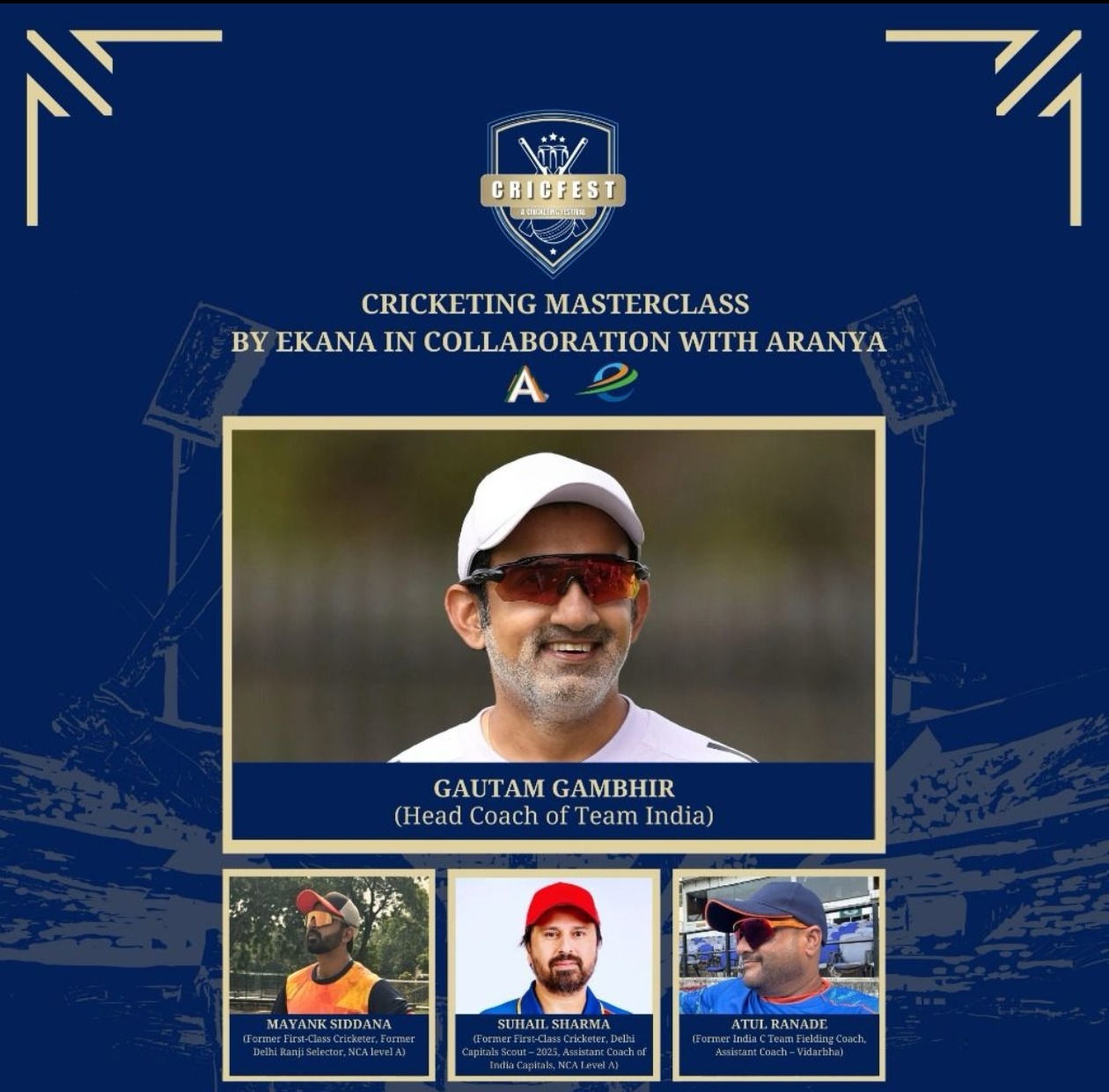 इस कार्यक्रम का आयोजन एकाना और अरण्य के सहयोग से किया जा रहा है। इसके अलावा, इस मास्टरक्लास में मयंक सिद्धाना (पूर्व प्रथम श्रेणी क्रिकेटर और दिल्ली रणजी टीम के पूर्व चयनकर्ता), सुहैल शर्मा (पूर्व प्रथम श्रेणी क्रिकेटर और इंडिया कैपिटल्स के सहायक कोच), और अतुल रानाडे (पूर्व भारत सी टीम फील्डिंग कोच) जैसे अनुभवी कोच भी शामिल होंगे।