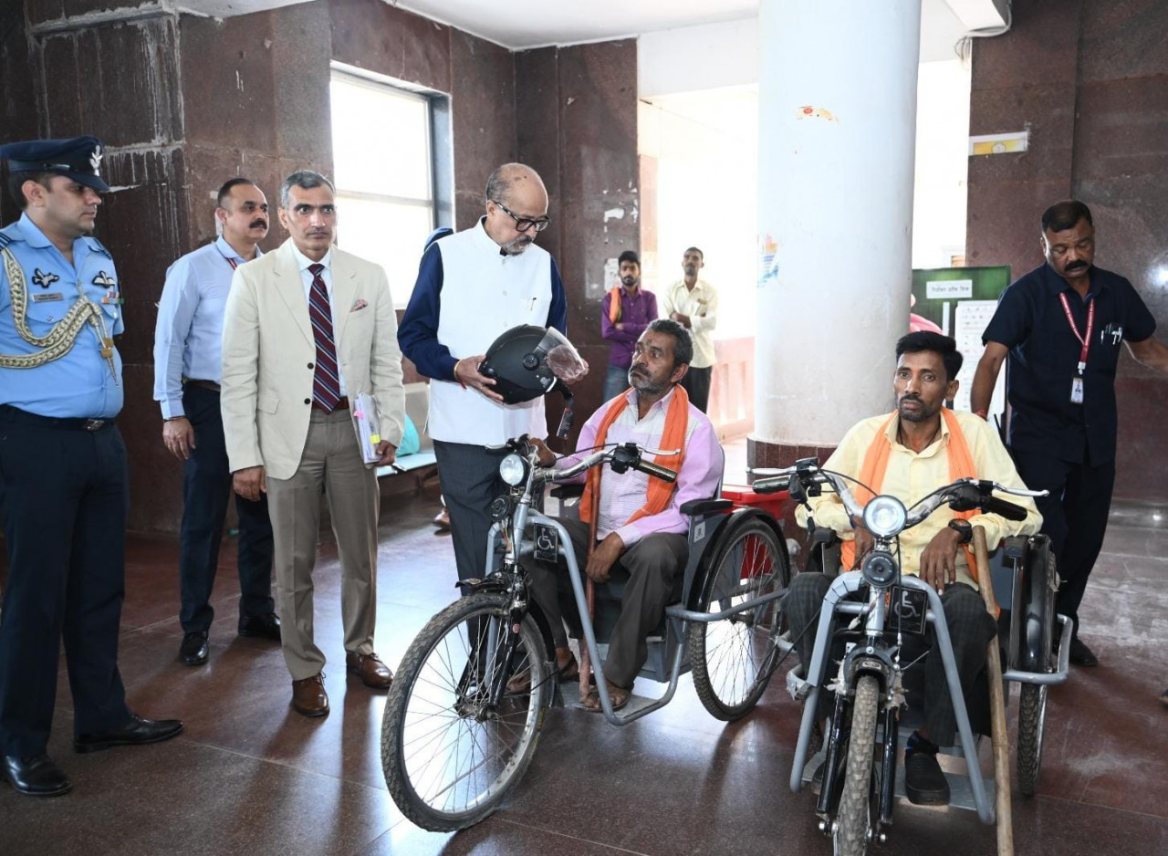 राज्यपाल रमेन डेका ने बेमेतरा में दिव्यांगजनों को बैटरी चलित ट्राइसाइकिल और हेलमेट प्रदान किए