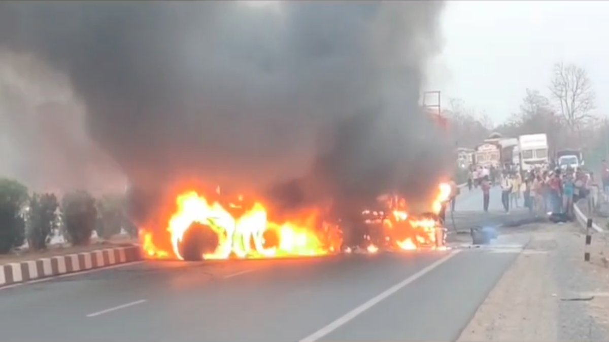 नेशनल हाइवे 53 पर ट्रेलर मे लगी आग, ड्राइवर की जलकर मौत