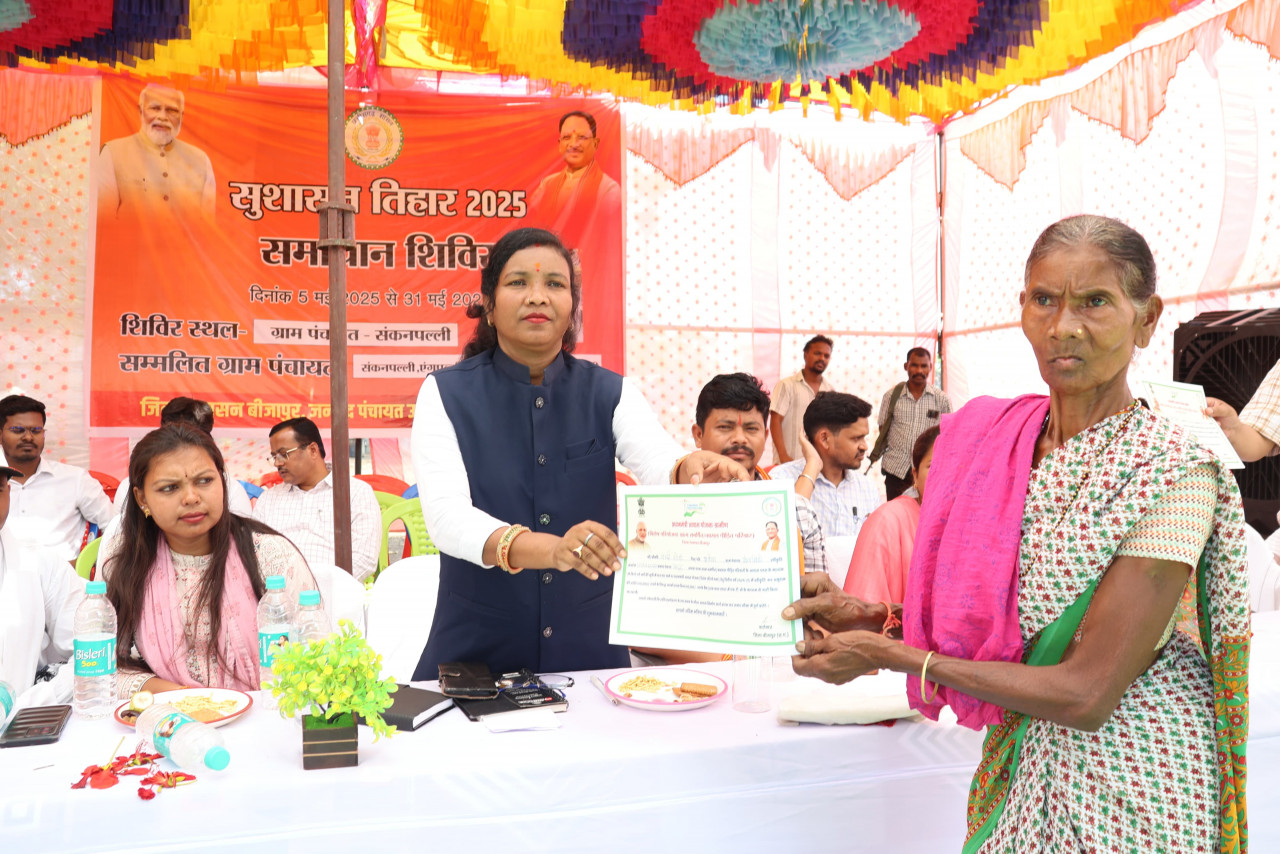 सुशासन तिहार 2025 के तीसरे चरण में बीजापुर जिले के उसूर ब्लॉक के संकनपल्ली ग्राम पंचायत में समाधान शिविर का आयोजन हुआ। जिसमें ग्राम पंचायत संकनपल्ली, ईलमिड़ी, सेमलडोडी, लंकापल्ली एवं ग्राम पंचायत एंगपल्ली के हजारों की संख्या में ग्रामीण शामिल हुए। समाधान शिविर का जन चौपाल आम पेड़ के छांव में लगा।