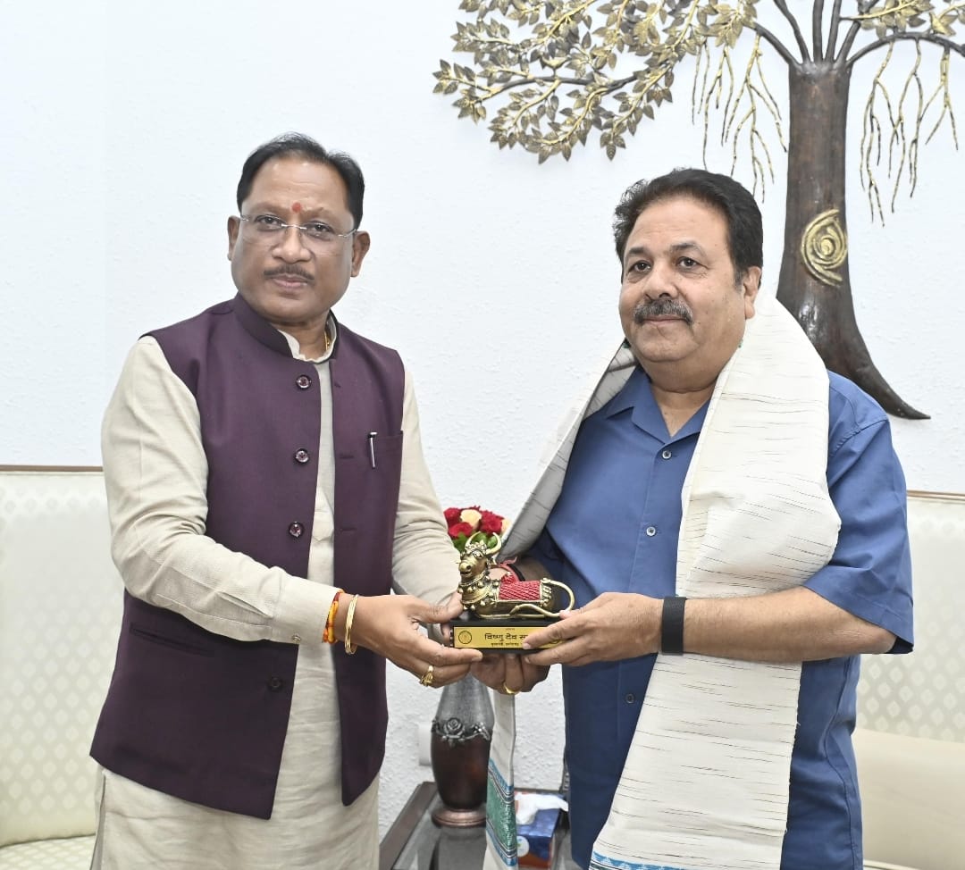मुख्यमंत्री विष्णु देव साय से बीसीसीआई उपाध्यक्ष राजीव शुक्ला ने की सौजन्य मुलाकात