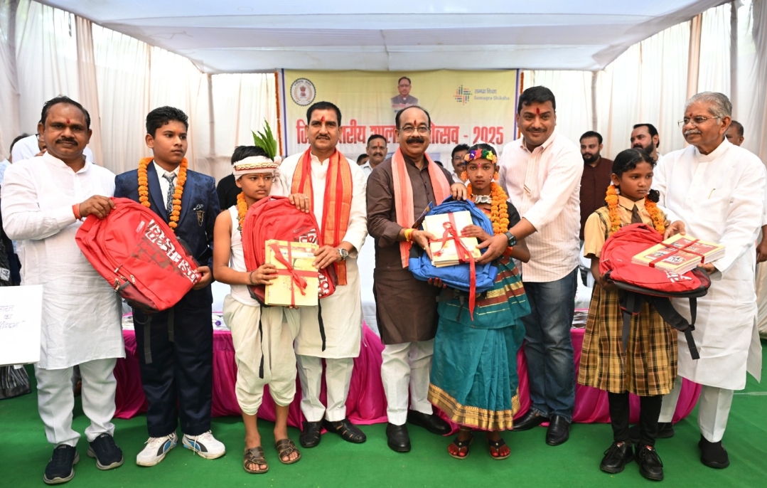 केन्द्रीय राज्य मंत्री श्री तोखन साहू और उप मुख्यमंत्री श्री अरुण साव ने शाला प्रवेशोत्सव में बाल अतिथियों प्रियांशु, साहिल, प्राची और धनमती का तिलक लगाकर, माला पहनाकर और मुंह मीठा कर स्वागत किया। कार्यक्रम में बच्चों को बैग, किताब, ड्रांइग किट तथा सरस्वती साइकिल योजना के तहत साइकिल वितरण भी किया गया। विधायकगण सर्वश्री धरम लाल कौशिक, दिलीप लहरिया और सुशांत शुक्ला भी कार्यक्रम में शामिल हुए।