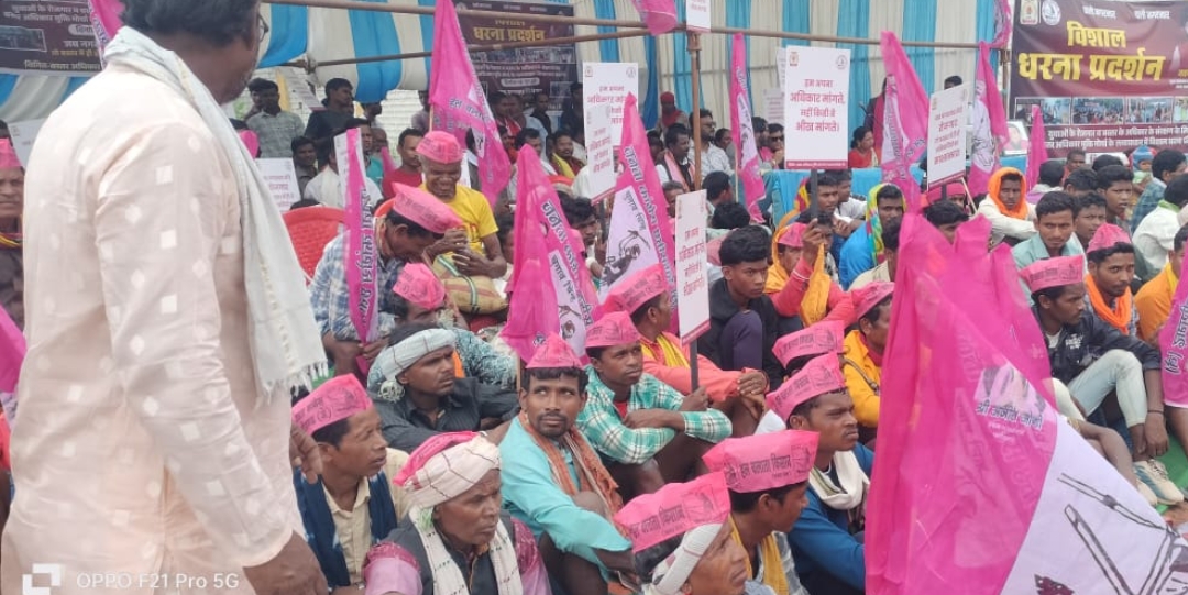 नगरनार में एनएमडीसी के सामने मुक्ति मोर्चा एवं जनता कांग्रेस का महाधरना