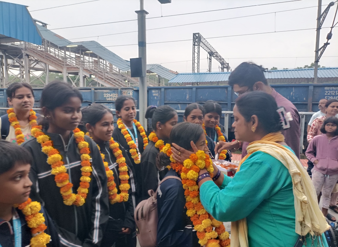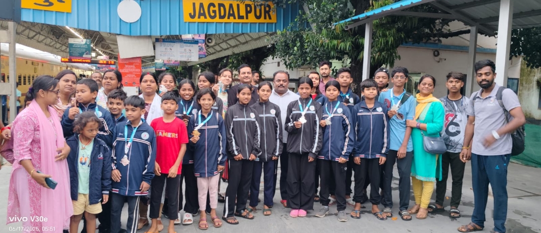 पदक विजेताओं का जगदलपुर रेल्वे स्टेशन में शानदार स्वागत