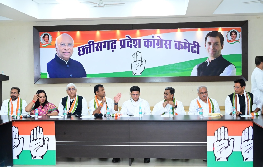 रायपुर। प्रदेश कांग्रेस की चार महत्वपूर्ण बैठकें प्रदेश प्रभारी सचिन पायलट की उपस्थिति में प्रदेश कांग्रेस अध्यक्ष दीपक बैज की अध्यक्षता में राष्ट्रीय महासचिव एवं पूर्व मुख्यमंत्री भूपेश बघेल, नेता प्रतिपक्ष डॉ. चरणदास महंत, पूर्व उप मुख्यमंत्री टी.एस. सिंहदेव, राष्ट्रीय सचिव एवं सह प्रभारी जरिता लैतफलांग, राष्ट्रीय सह-सचिव एवं सह प्रभारी विजय जांगिड़ की उपस्थिति में संपन्न हुई।