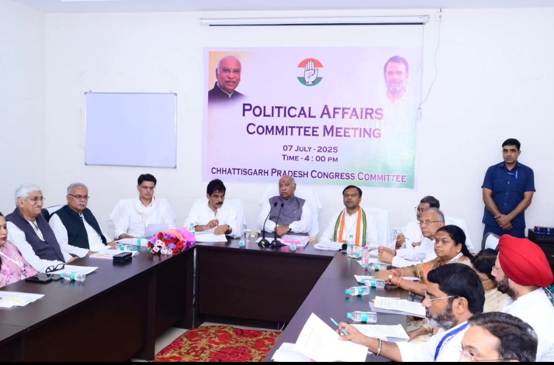 रायपुर। कांग्रेस के राष्ट्रीय अध्यक्ष मल्लिकार्जुन खड़गे ने प्रदेश कांग्रेस की दो महत्वपूर्ण बैठकें लिया। पहली बैठक वरिष्ठ नेताओं की प्रदेश पॉलिटिकल अफेयर कमेटी की तथा दूसरी बैठक प्रदेश कांग्रेस कार्यकारणी की विस्तारित बैठक हुई।