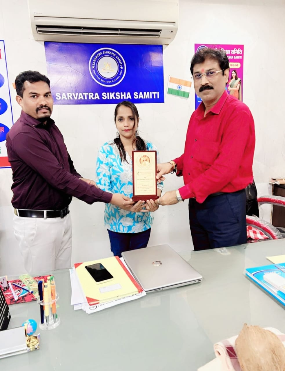 संस्कार पाठशाला के कार्यों की सराहना स्मृति चिन्ह के साथ।
