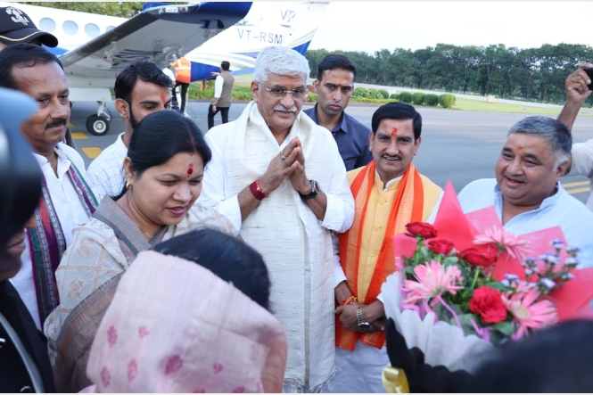भारत सरकार के पर्यटन एवं संस्कृति मंत्रालय के केन्द्रीय मंत्री गजेन्द्र सिंह शेखावत आज अंतरराष्ट्रीय ख्यातिप्राप्त चक्रधर समारोह में शामिल होने रायगढ़ पहुंचे। उनके आगमन पर ओपी जिंदल एयरपोर्ट, रायगढ़ में गरिमामय एवं आत्मीय स्वागत किया गया। इस अवसर पर भारत सरकार के आवासन एवं शहरी कार्य मंत्रालय के केन्द्रीय राज्य मंत्री तोखन साहू, छत्तीसगढ़ शासन के पर्यटन एवं संस्कृति मंत्री राजेश अग्रवाल, राज्यसभा सांसद देवेंद्र प्रताप सिंह, लोकसभा सांसद राधेश्याम राठिया सहित स्थानीय जनप्रतिनिधिगण एवं गणमान्य नागरिक उपस्थित थे।