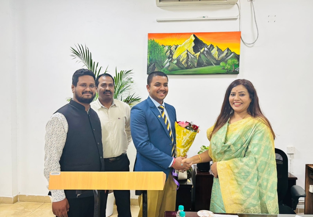 छत्तीसगढ़ लौटने पर सौजन्य भेंट में बाल सरंक्षण आयोग की अध्यक्ष डॉ वर्णिका शर्मा, विधायक अनुज शर्मा और खेल संचालक तनुजा सलाम ने बधाई दी।